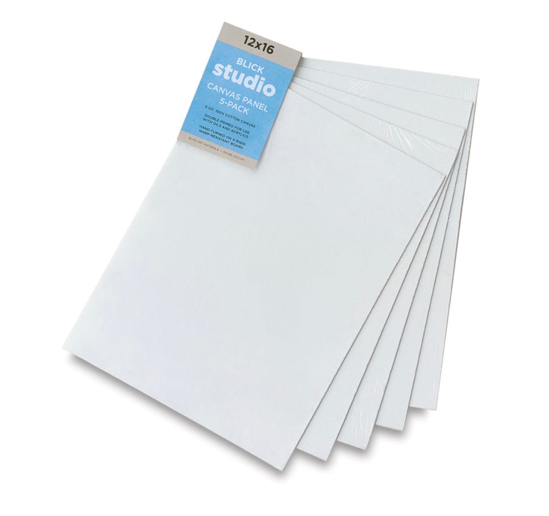 These are the canvas panels that I recommend. My go-to sizes are 11x14, 12"x16", 14"x18", 16"x20", 18"x24", and 20"x24" (inches x inches).