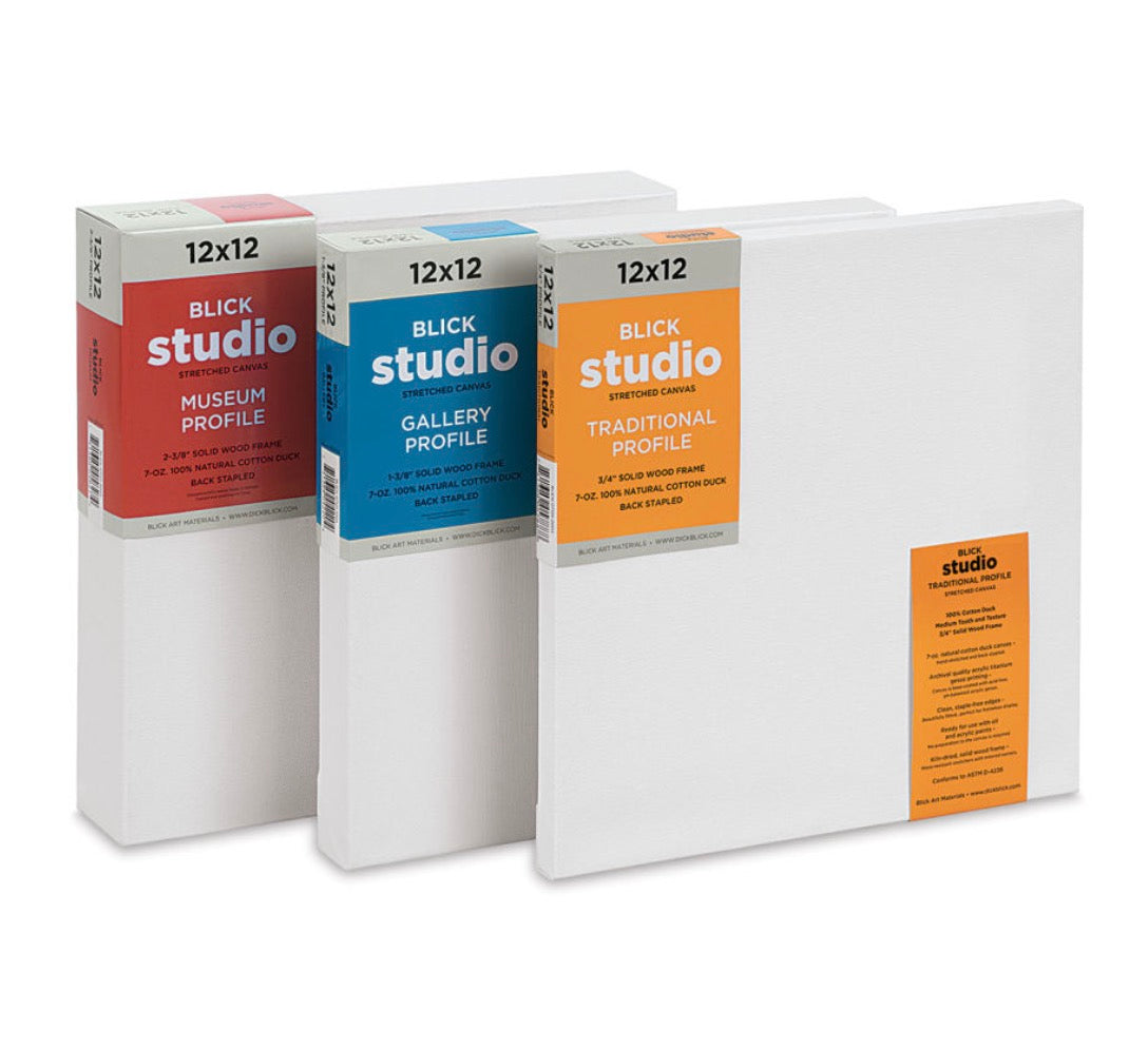 These are the canvases that I recommend. I use larger sizes for stretched canvases such as 24"x30", 24"x36", 30"x40", 36"x48", and occasionally 15"x30"