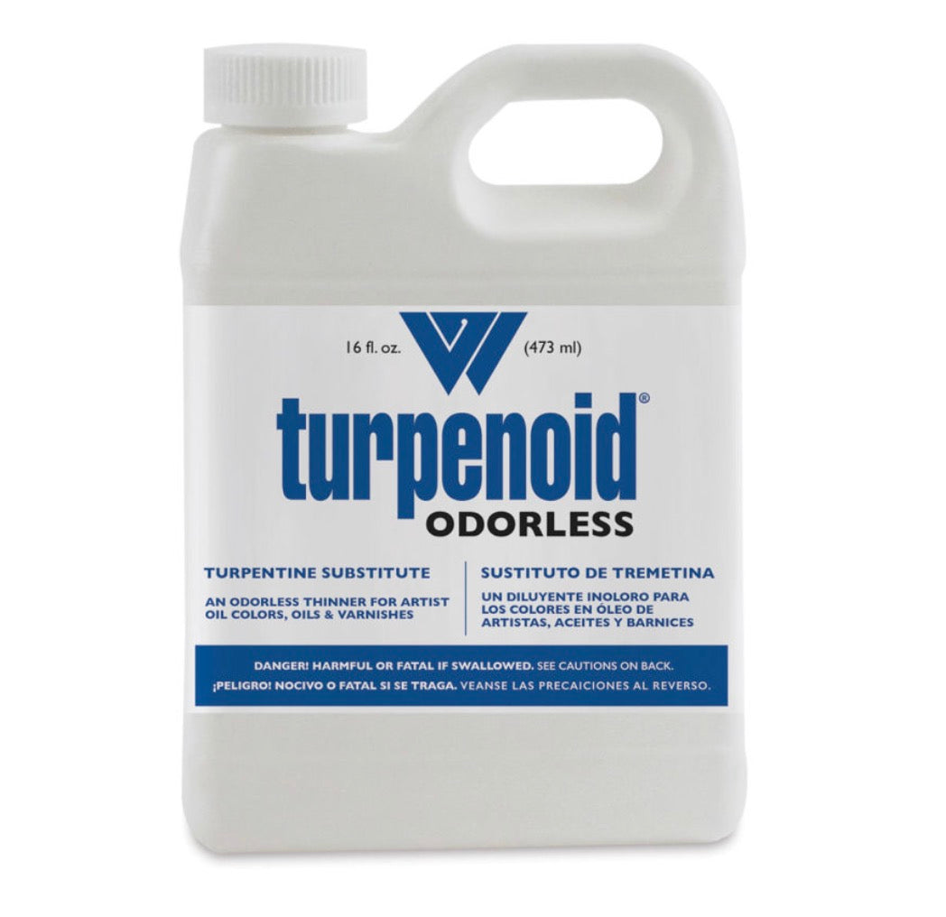 Because Turpentine can have a toxic odor in large amounts, Turpenoid is a great altnerative when larger amounts are needed to thin oil paints. I always use Turpentine in addition to other thinners to decrease its concentration and odor.